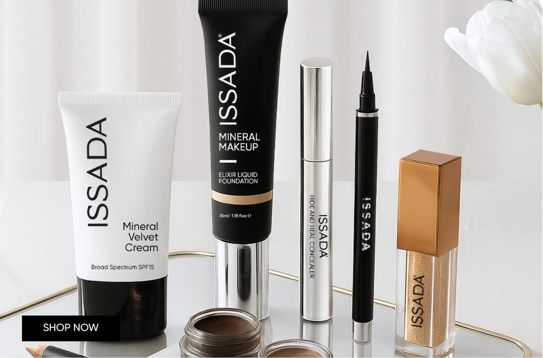 Discover ISSADA Mineral Makeup, No Nasties, No Talc, Safe for all skin types and infused with Vitamins and Peptides for healthy skin.