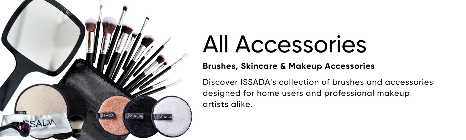 Discover ISSADA's collection of brushes and accessories designed for home users and professional makeup artists alike.