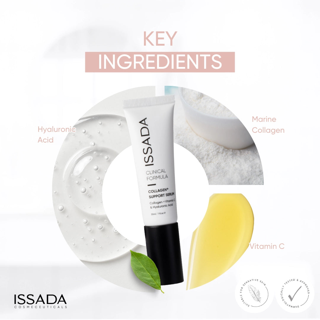 A supercharged serum infused with Marine Collagen to strengthen and repair elastin, antioxidant Vitamin C and hydrating Hyaluronic Acid. Plumps, brightens, smoothes and restores skin vitality.