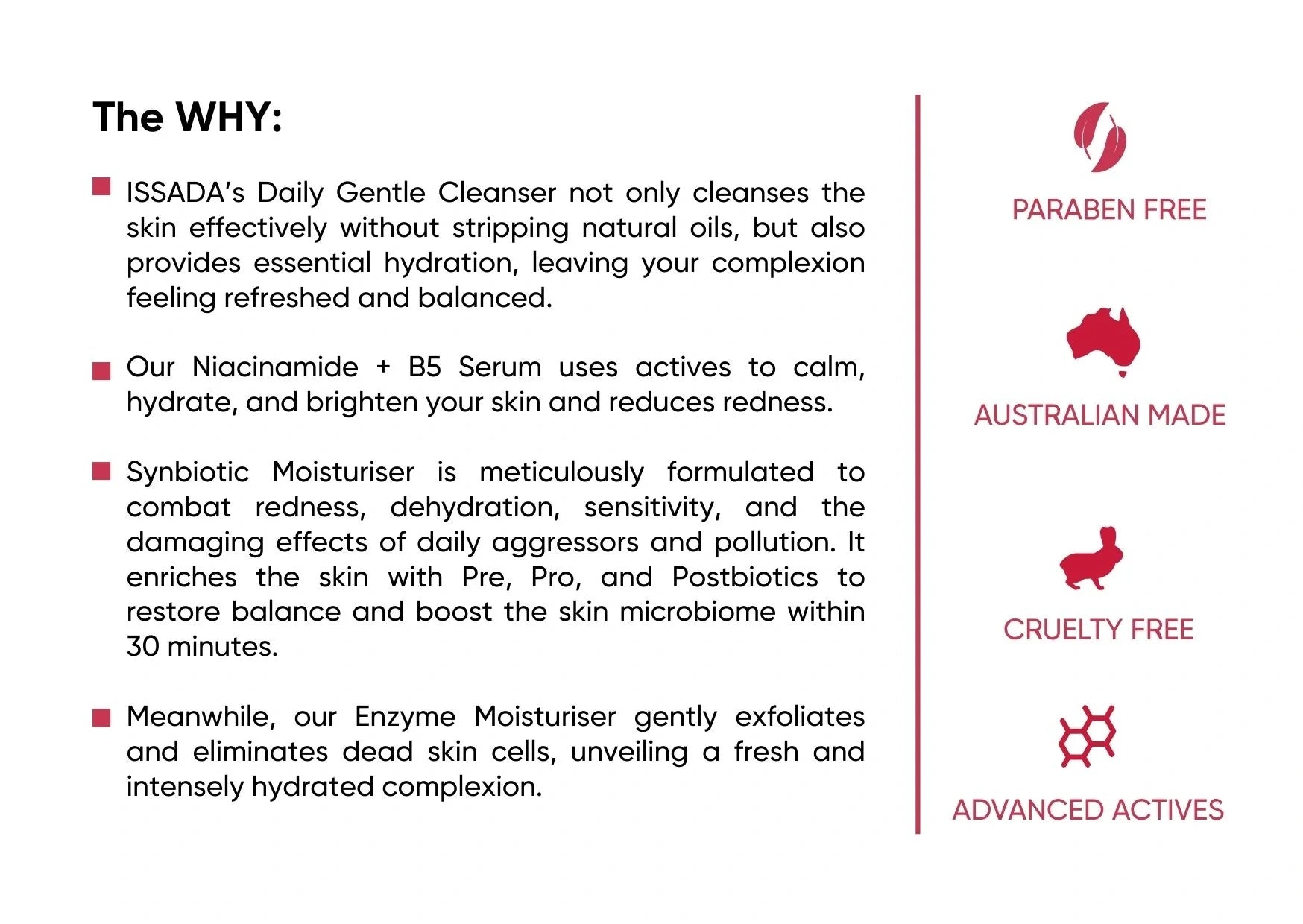 B3 + B5 Vitamins assist in calming, nourishing, hydrating and brightening/revitalising your complexion.